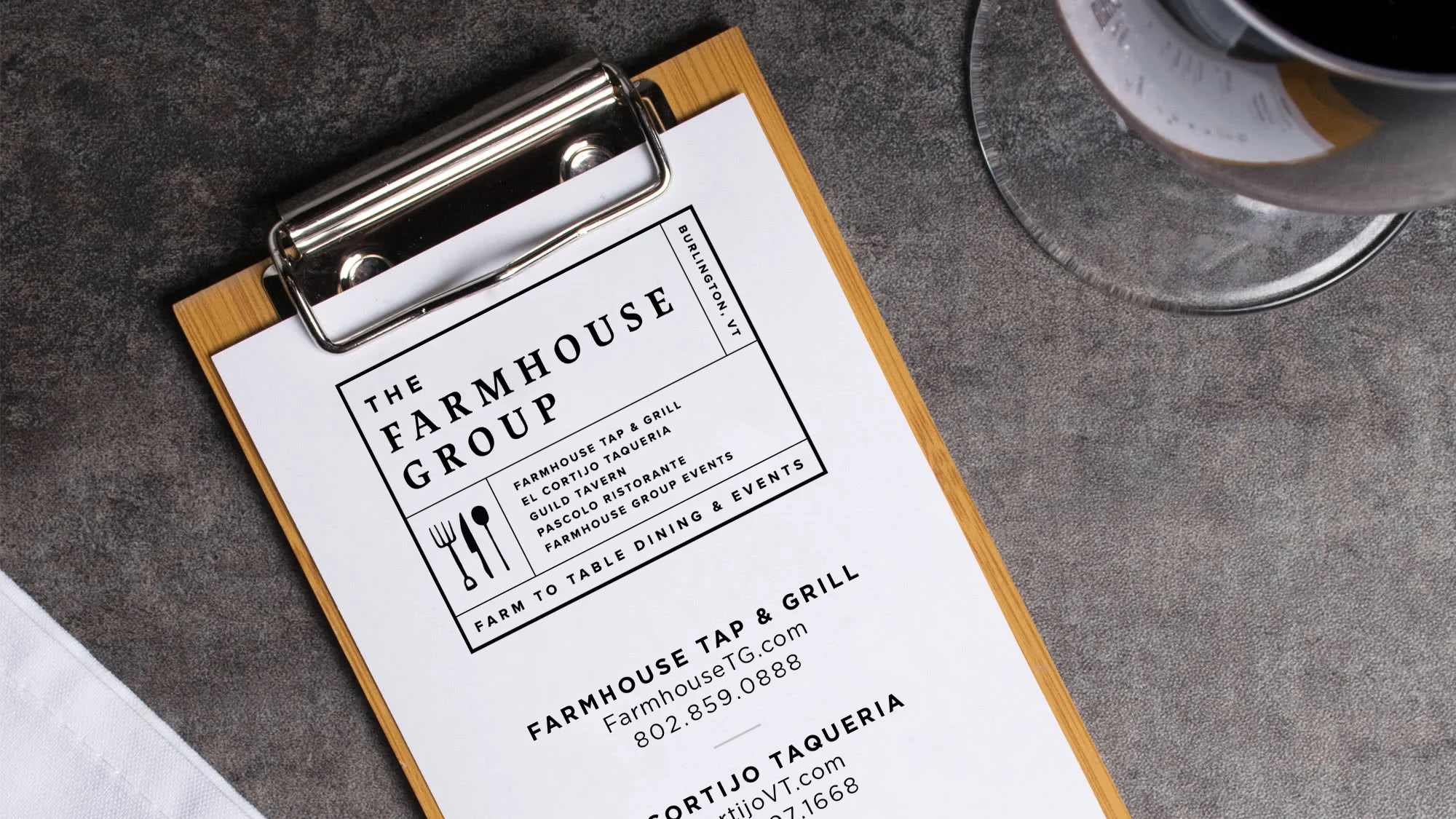 With four restaurants in greater Burlington, VT, full-service private events, and farm-to-office catering, The Farmhouse Group has all bases covered. Menus are designed to showcase local ingredients, farms, and food producers, all while supporting the development of local food systems by offering inspired dining experiences in their community. In collaboration with Oxbow, an updated brand was created to bring that local connection to life. More than just a mark, the new brand encompassed digital and collateral extensions beyond the logo, with posters, digital and print ads, a new website, updated menus, and more to support the clean and streamlined look.